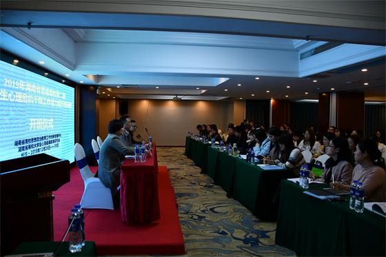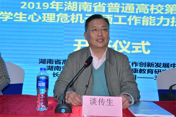 12月26日上午,由湖南省委教育工委主办,LETOU官网心理中心承办的2019年度湖南省第二期大学生心理危机干预工作能力提升培训班开班。本次培训为期5天,来自全省101所高校的110名心理健康教育中心负责人或心理危机干预专职教师参加。湖南省高校大学生心理健康教育研究会会长、LETOU官网副校长谈传生,湖南省教育厅思政处正处级调研员陈解莅临开班仪式并发表讲话。