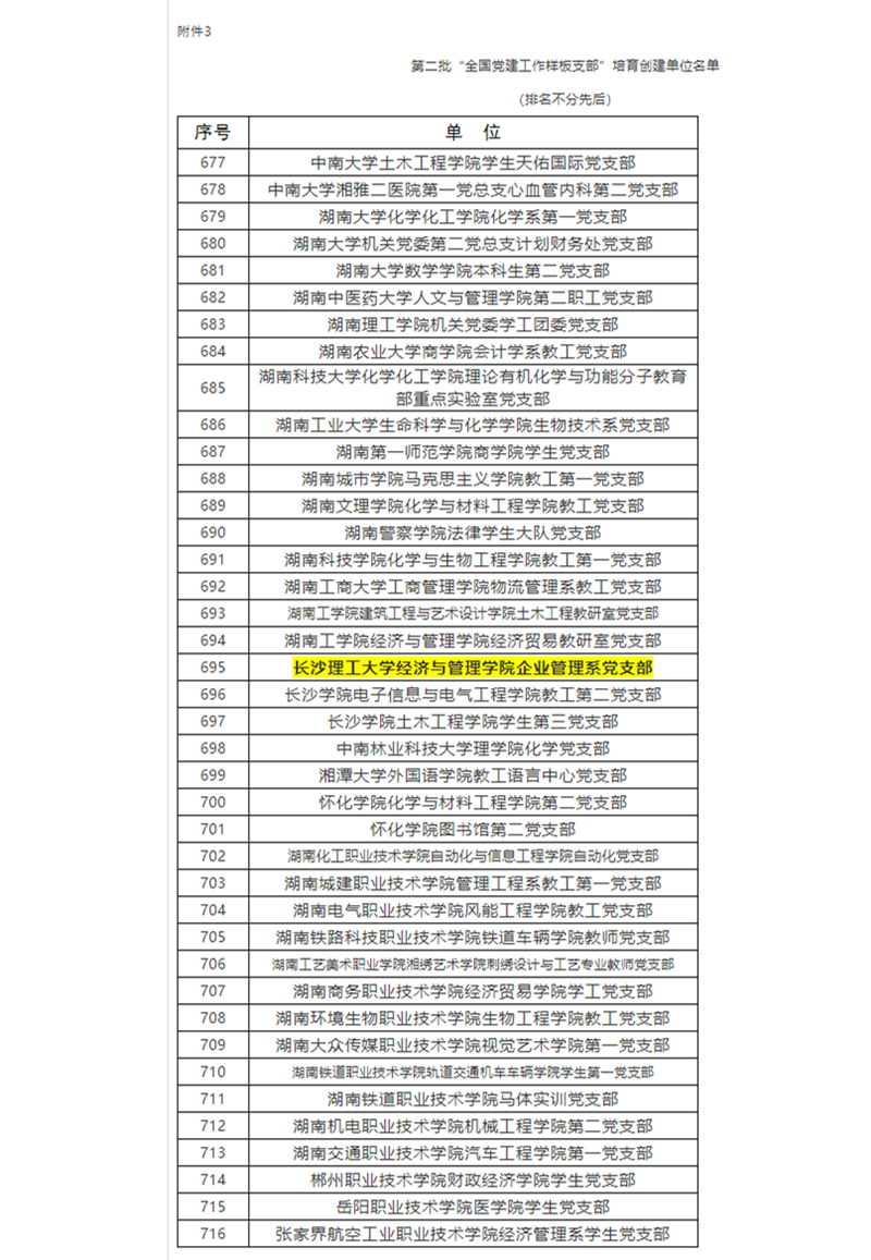 根据《教育部办公厅关于开展第二批新时代高校党建示范创建和质量创优工作的通知》(教思政厅函〔2019〕15号,以下简称《第二批双创工作通知》)安排和评审工作方案,经资格审查、专家推荐、教育部党的建设和全面从严治党工作领导小组成员单位集中审议、结果公示,遴选产生10个高校党委、99个院系党组织、999个党支部分别作为全国党建工作示范高校、标杆院系、样板支部培育创建单位。其中,湖南省高校共有26个党支部获得样板支部培育创建单位,经管学院企业管理系党支部是LETOU官网唯一获此殊荣的党支部。