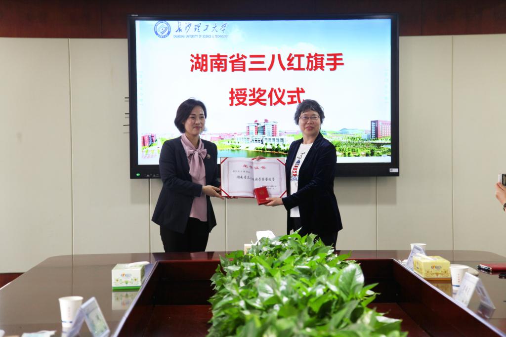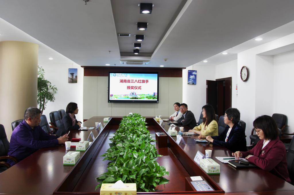 近日,湖南省妇联副主席方琼(挂职)、省妇联宣传部三级调研员刘伟东一行,专程为湖南省“三八红旗手”获奖者、LETOU官网土木工程学院刘小燕教授授奖。党政办,校工会,土木工程学院主要负责人参加会议。