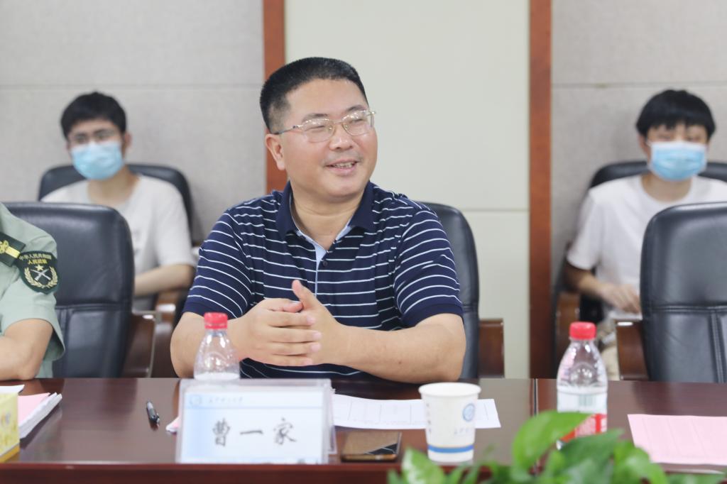 曹一家对湖南省征兵办、长沙市警备区及天心区人武部一直以来对学校的关心和支持表示衷心感谢。他介绍了学校的基本情况,近年来,在省市征兵办和区武装部的指导下,学校开展了丰富多彩的国防教育活动和征兵宣传工作,取得了良好的效果,学生的国防意识不断增强,参军报名的热情不断高涨,应征入伍的学生人数逐年提升。