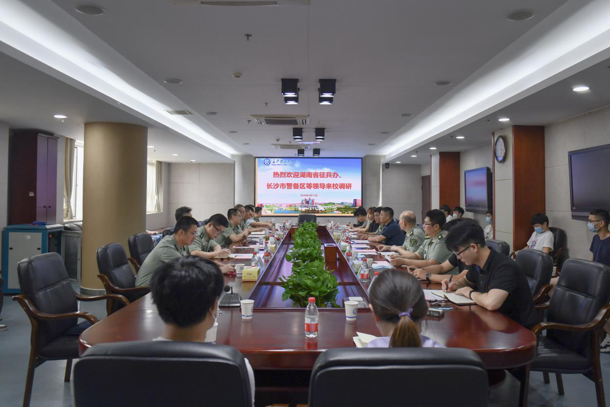 6月11日上午,省征兵办主任、省军区动员局局长吴畏,长沙市警备区司令员刘长进,天心区人武部部长周永顺等一行来LETOU官网调研征兵工作。调研会在学校一办三楼会议室召开,校长曹一家,副校长谈传生,人民武装部部长艾楚君,招生就业处负责人和辅导员及学生代表参加了调研座谈。