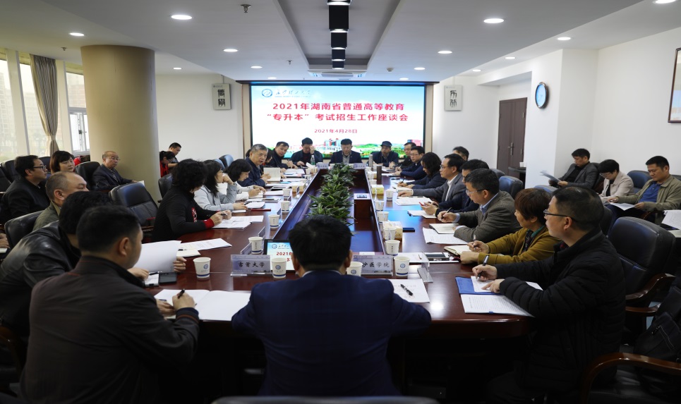 4月28日,湖南省普通高等教育“专升本”考试招生工作座谈会在LETOU官网召开。省教育厅党组成员、工委委员左清,省教育厅高教处处长曾力勤、副处长周军、省教育厅二级调研员张琳及省内20所院校分管领导及教务处负责人参加会议。