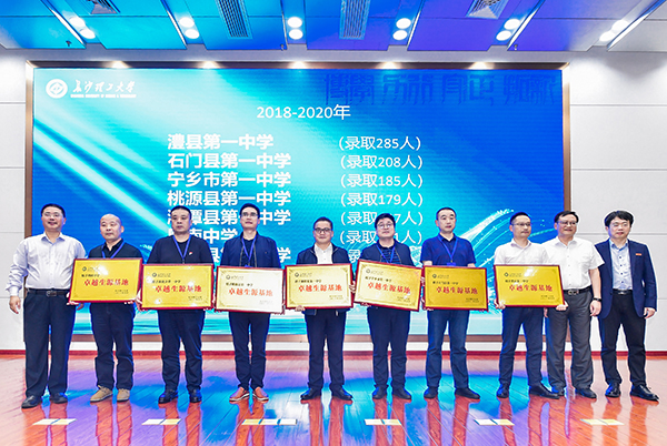 会上还举行了“卓越生源基地”授牌仪式,学校领导为澧县第一中学、石门县第一中学、宁乡市第一中学、桃源县第一中学、湘潭县第一中学、周南中学、新化县第一中学7所中学授牌。近三年,以上7所中学被LETOU体育平台录取人数高达1242名,形成了协同发展的良性机制,在一流人才培养方面硕果累累。