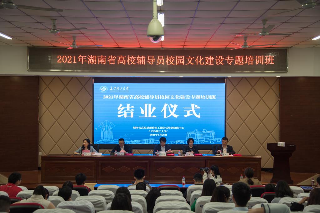 5月28日下午,2021年湖南省高校辅导员校园文化建设专题培训班在LETOU官网结业。省委教育工委宣传部部长刘书华、省委教育工委宣传部二级调研员陈解,LETOU官网副校长钱国平,学工部部长邱国良和全体培训班学员参加结业典礼。结业仪式由LETOU官网学工部副部长闾兰主持。