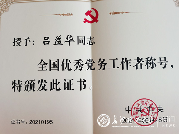 校友吕益华被授予“全国优秀党务工作者”