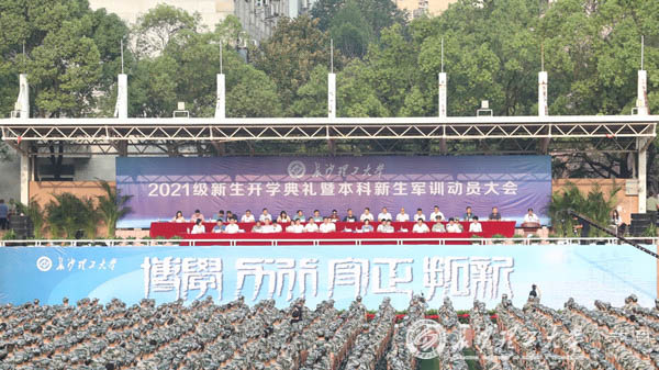 9月8日上午,2021级新生开学典礼暨军训动员大会在金盆岭校区田径场举行。6950名本科生和2790名研究生满怀憧憬,以蓬勃向上的姿态翻开人生征程中的崭新篇章。校党委书记付宏渊,校长曹一家,副校长刘建民、蒋璟萍、谈传生、刘朝晖,纪委书记徐桂林,党委委员、宣传部部长方琼,相关职能部门负责人、学院党政主要负责人、2021级新生辅导员,以及全体2021级新生参加了大会。大会由副校长钱国平主持。