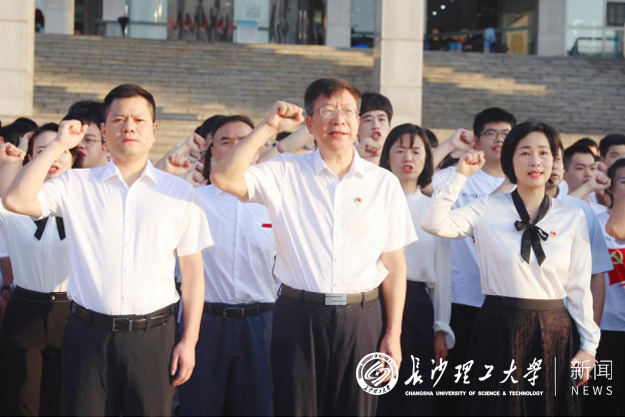 在学生代表的带领下,全体师生郑重的举起右手,面向国旗,共同发出“以青春奋斗助力中华民族伟大复兴”的铮铮誓言。