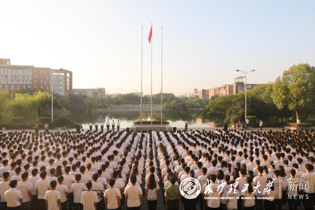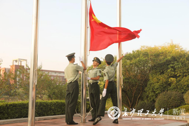 清晨7点,国旗班队员们迈着整齐而坚定的步伐护送五星红旗入场。伴随着庄严的国歌声,五星红旗在习习晨风中冉冉升起。在场师生高唱国歌,向国旗行注目礼。国歌唱毕,全体肃立,缅怀先烈,向人民英雄致敬。