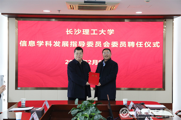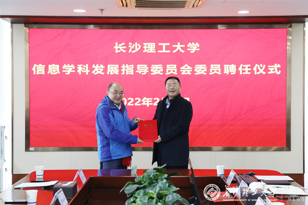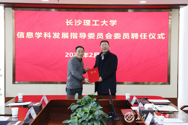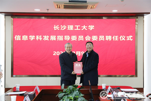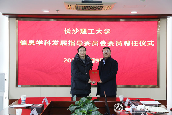 会上举行了信息学科发展指导委员会成立仪式,邀请王怀民院士担任指导委员会主任,廖湘科院士、桂卫华院士、李肯立院长和刘宏教授担任指导委员会委员。曹一家为全体委员颁发了聘书。