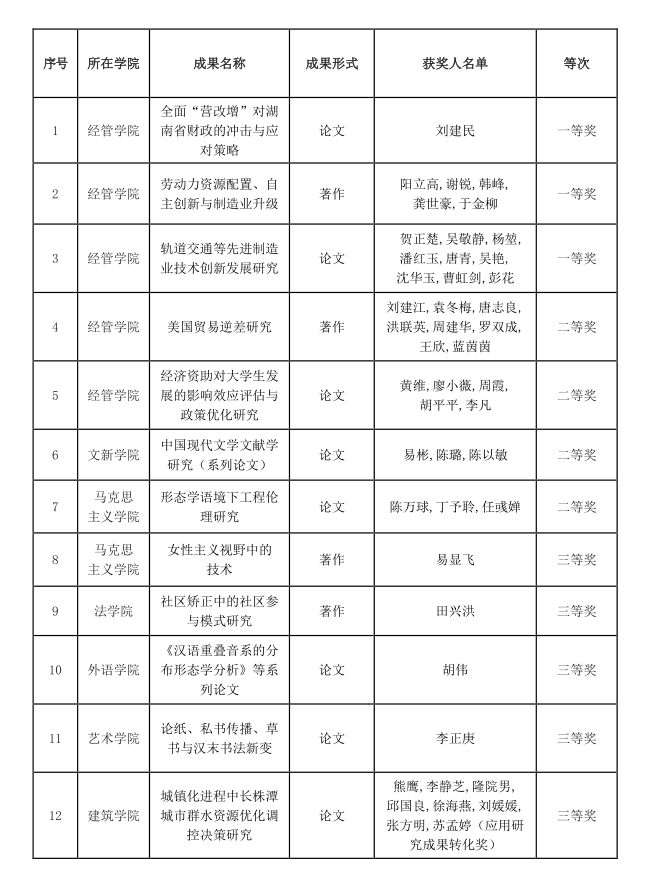附:LETOU体育平台获湖南省第十五届社会科学优秀成果奖一览表