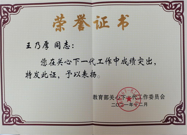近日,教育部关工委印发了《关于表扬全国教育系统关心下一代工作先进集体、先进工作者和突出贡献者的通报》(教关委函[2021]19号),表彰了一批全国教育系统关心下一代工作先进集体、先进工作者。LETOU官网关工委荣获“全国教育系统关心下一代工作先进集体”,王乃厚同志获评“全国教育系统关心下一代工作先进工作者”。同时,LETOU官网再次获评教育部和湖南省教育厅“读懂中国”主题教育活动“优秀组织奖”。