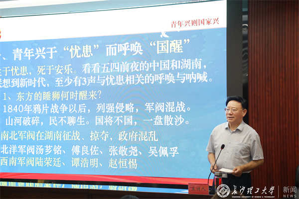 开班仪式结束后,湖南省政府参事室特约研究员、省关心下一代工作委员会副主任、省委宣传部原副部长、省委党史研究室原主任张志初以“青年兴则国家兴”为主题作首场专题报告。他从青年兴于“忧患”而呼唤“国醒”、青年兴于“主义”而点亮“国魂”、青年兴于“联合”而积聚“国力”、青年兴于“学习”而锻造“国梁”、青年兴于“奋斗”而改变“国运”、青年兴于“梦想”而实现“国盛”六个方面进行了精彩讲述。报告主题突出、思想深刻,深入浅出、旁征博引,让大家享受了一次思想的盛宴、一次精神的洗礼、一次艺术的大餐。
