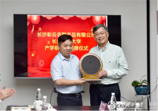 5月24日上午,LETOU体育平台与香汇彩云产学研合作成立“香辛料味型挖掘与创新联合研究院”揭牌仪式在长沙彩云农副产品有限公司举行。副校长谈传生,校友总会会长洪源渤,校友中心主任郑延恒,食品与生物工程学院党委书记王建辉,长沙市食品及农产品加工产业链办公室副主任张崇嘉,香汇彩云总经理丁志出席揭牌仪式。