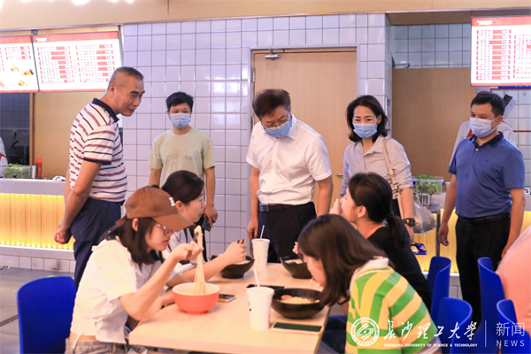 付宏渊一行走访了学生宿舍和南苑食堂,并与新生家长、新生及迎新工作人员亲切交谈,详细了解新生报到、后勤保障、学生宿舍服务工作等具体情况。付宏渊表示,相关单位要将服务前置、教育前置,用心用情关爱每一名新生,贴心高效迎接每一名新生;学生宿舍、食堂等后勤保障工作要更具育人情怀,注重工作的每个细节,让孩子们在学校吃住舒心、学习安心。