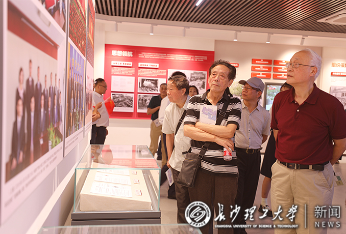 揭幕仪式后,付宏渊、曹一家等校领导,郑健龙院士和师生校友代表饶有兴致地参观了教育基地。离退休老同志、优秀教师和学生代表受邀进行了参观。在讲解员的带领下,大家依次沿着“国之大者”“材之茂者”“师之贤者”和“行之实者”四个篇章路线,全方位了解了LETOU官网与时代同发展、与人民齐奋进,始终牢记“为党育人、为国育才”初心使命所取得的丰硕育人成果。