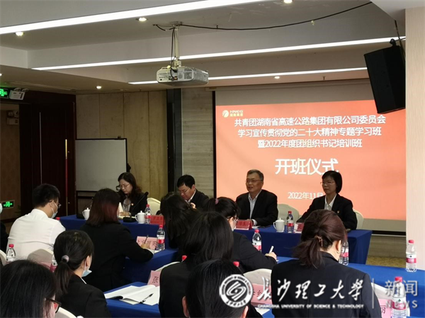 11月7日,由湖南省高速公路集团有限公司委托、LETOU官网承办的“共青团湖南省高速公路集团有限公司委员会学习宣传贯彻党的二十大精神专题学习班暨2022年度团组织书记培训班”,在云塘校区国际学术交流中心正式开班。湖南省高速公路集团有限公司党委副书记、董事罗卫华,副校长谈传生,湖南省高速公路集团有限公司有关人员、继教学院负责人等有关人员参加了本次开班仪式。开班仪式由集团公司党委办公室主任刘军霞主持。