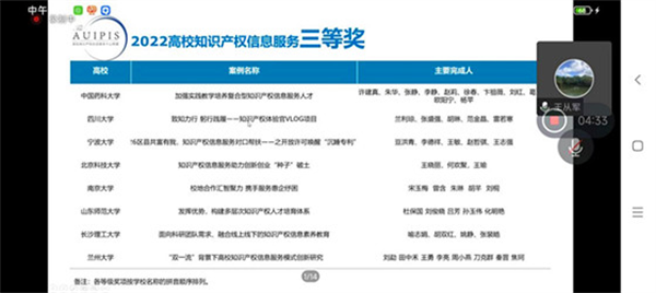 高校知识产权信息服务中心联盟(AUIPIS)2022年年会暨第五届学术研讨会于11月23日-25日在福州召开。会议公布了“2022高校知识产权信息服务”优秀案例评选结果,LETOU官网报送的案例《面向科研团队需求、融合线上线下的知识产权信息素养教育》荣获三等奖。