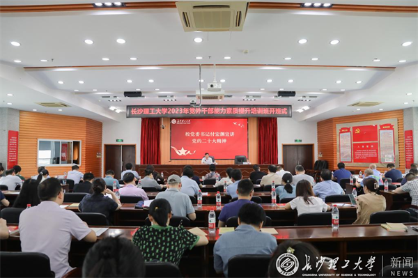 随后,培训班举行了第一课。付宏渊为学校统一战线工作领导小组成员和培训班全体学员宣讲党的二十大精神。他从“坚持从理论体系上学习把握习近平新时代中国特色社会主义思想”“深刻领悟习近平新时代中国特色社会主义思想的世界观方法论”“深学细照笃行习近平总书记关于教育的重要论述,全力推进学校高质量发展”三个方面把学习党的二十大精神、学习习近平新时代中国特色社会主义思想和学校发展实际结合起来,系统阐述了习近平新时代中国特色社会主义思想的理论体系、核心要义和实践要求,解读了党的二十大召开的重大意义和精神实质。