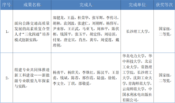 为了适应公路交通高质量发展的高素质复合型人才需求,在郑健龙院士的带领下,团队经过15年改革实践,创立“博学与力行相统一、守正与拓新相融合”育人理念;创建了面向公路交通高质量发展的高素质复合型人才“三化四通”培养模式;施行了“大思政贯通、专业群贯通、训赛创贯通、科产教贯通”,打破了专业壁垒,建立并贯彻“校、院、系、师”四连线,“专业共建、课程共创、团队共育、项目共研、平台共筑、质量共管”六协同,“高端人才引领、交叉平台支撑、科研项目牵引”三联动育人机制,实现了公路交通类专业人才培养的贯通;破解了专思教育“两张皮”难题,实现了人格塑造全程化;理论与实践、课内与课外、校内与校外相结合,实现了人才培养方式多元化;构建特色鲜明专业群及交叉化模块化课程体系,更好适应了公路交通高质量发展需要构建了“基础+特色”育人模块,走出了为交通高质量发展培养高素质复合型人才的新路子。由能动学院陈荐教授参与的教学成果则展示了组建专业共同体以推进新工科建设,以及新能源专业联盟九年的探索与实践成果。