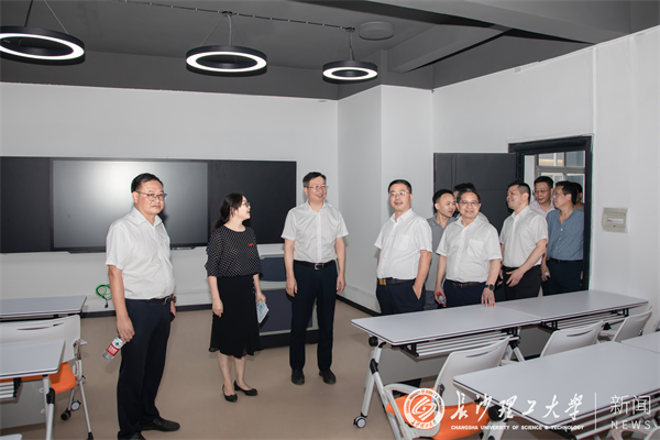 在云塘校区,付宏渊、曹一家一行实地查看了校园建设和提质改造情况,并前往洞庭湖水环境治理与生态修复湖南省重点实验室、电网防灾减灾全国重点实验室、源网荷储综合能源系统实验室、风洞实验室、创新创业教育学院、公路养护技术国家工程研究中心等地,全面检查工作进展。