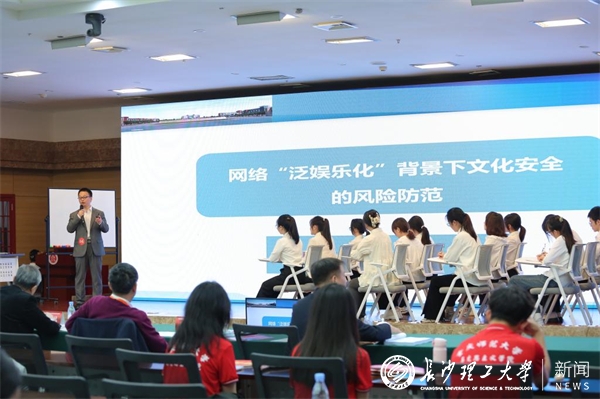 现场展示环节,陈方芳以《网络“泛娱乐化”背景下文化安全的风险防范》为题进行教学展示,通过图文并茂、理论与案例生动结合等形式展示了网络“泛娱乐化”对于国家文化安全的深刻影响,将文化安全的知识学习、情感体验与价值引领紧密融合,引导同学们树立正确的娱乐观、文化观,筑牢总体国家安全观。