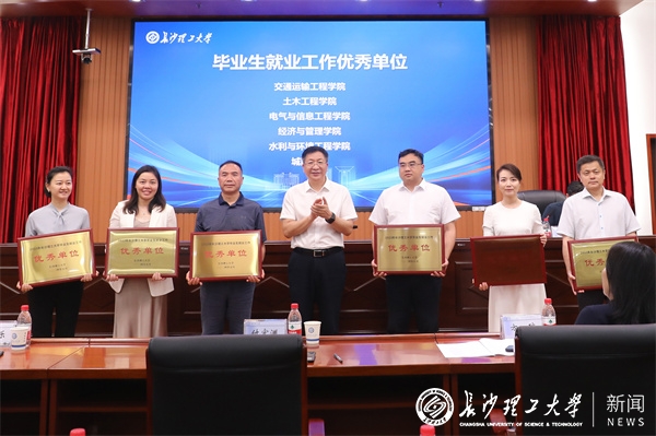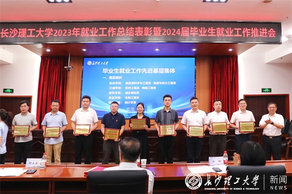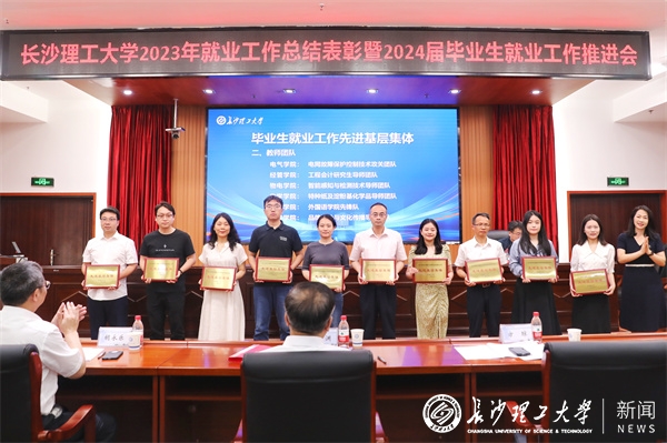 副校长胡永乐宣读2023年毕业生就业工作表彰决定。校领导为受表彰代表颁奖。