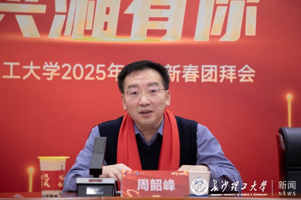 1月18日上午,学校在云塘校区一办九会议室举行2025年“校友回湘”新春团拜会。本次团拜会采用线上线下相结合的方式。湖南省教育厅学生处处长、“校友回湘”工作专班执行主任周韶峰,校党委书记付宏渊,副校长、校友总会会长谈传生,校党委副书记方琼出席,副校长、校友总会副会长刘朝晖主持团拜会。学校“校友回湘”专班各部门、各学院负责人以及16名校友代表出席主会场活动,300余名校友代表在海内外81个校友会设置的分会场线上连线互动。