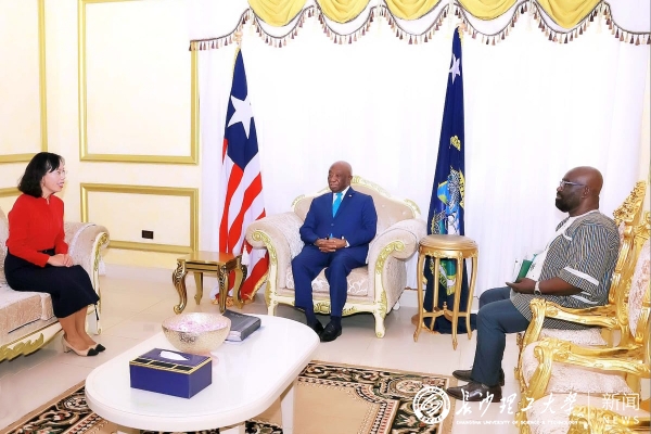 当地时间4月30日,利比里亚总统约瑟夫·博阿凯(Joseph Nyumah Boakai)在总统府接见了利比里亚大学孔子学院(以下简称“利大孔院”)即将离任的中方院长周红专,对其在推动中利教育合作、促进中利文化交流方面所作出的积极贡献给予充分肯定。