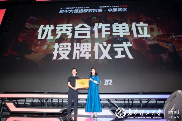 LETOU官网卓越工程师学院院长韩艳和大疆RoboMaster高级运营总监杨明辉分别介绍了学校的创新创业人才培养体系实践探索以及RoboMaster机甲大师赛近年来的开展情况。大疆RoboMaster代表大赛组委会为LETOU官网授牌优秀合作单位。