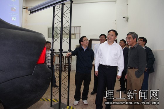 张剑飞一行在校党委书记付宏渊、校长赖明勇以及党政办、交通学院、土建学院负责人陪同下,兴致勃勃地来到公路养护技术国家工程实验室,参观了公路现场检测实验室、模拟驾驶实验室、大型三轴试验室TLJ—150A型土木离心机,向实验室主任郑健龙教授获评中国工程院院士表示祝贺,称其为“行业的宝贝”,并就专业问题与郑院士进行了深入交流。随后,参观了结构工程省部共建实验室,土建学院院长李传习在加固技术及材料实验室现场向张剑飞一行进行了介绍。