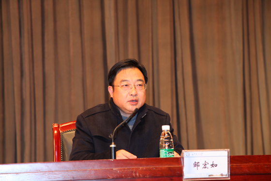 邹宏如在总结讲话中希望全校上下共同努力,积极配合,认真深入学习付宏渊书记讲话精神和学校2017年工作要点,通过学习把思想认识统一到学校党委的部署要求上来,把精力和热情聚焦到学校的重点工作上来,把行动和步伐统一到发展步调上来,结合各自工作实际,把讲话精神和工作要点贯彻落实到全年的工作中,体现在今年的发展成果之上。(摄影\刘湖)