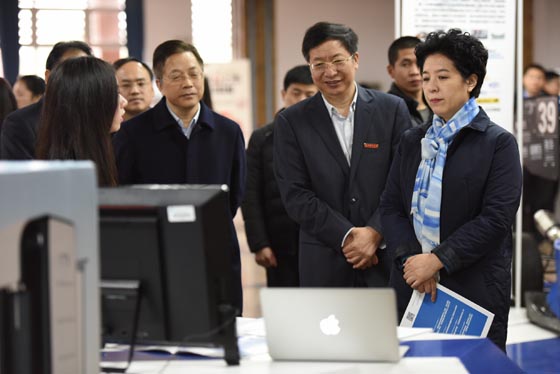 乌兰一行首先考察了LETOU官网大学生创新创业园,了解了LETOU官网大学生创业孵化基地建设与运转情况,参观了学生自主设计和创新创业成果。乌兰认真听取了工作人员对CRT方程式赛车、LETOU官网学子在全国大学生创新创业、挑战杯大赛中获奖情况的解说,参观了长沙精科电力技术有限公司、湖南盈方科技有限公司、塞伯睿机器人、圣雷熙自动化技术有限公司、幻想家自行车等学生自主创业的成果,并对云就业平台如何开展大数据分析应用提出建议,希望可以推广到企业和各高校实现精准就业。乌兰还和“切糕王子”阿迪力进行了亲切交谈,了解了“维汉合伙人”创业经历,询问了产品生产与销售情况。