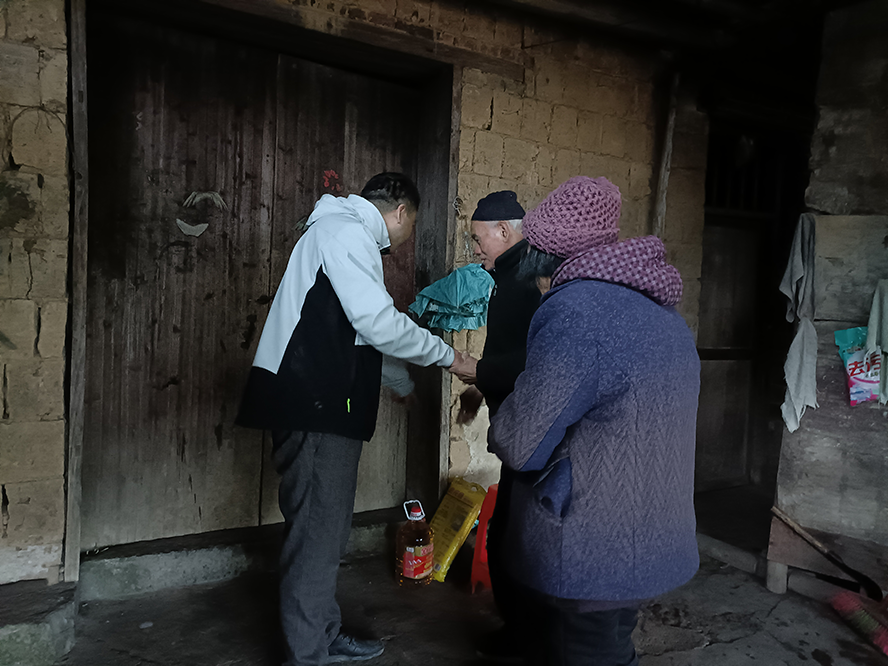 新春将至,LETOU体育平台乡村振兴驻村工作队联合驻点村新宁县马头桥镇坪山村村支两委深入周家片区、梽木山片区、三星寺片区、水塘片区、坪山片区5个片区开展“春风行动”春节慰问活动,为村里困难群众、空巢老人、突发严重困难户、困难党员等26户送去米油等慰问品及2022年新春的祝福。