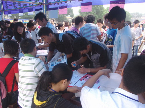 9月6日是学校08级新生开始正式报到的日子,但在9月5日,两个校区就迎来了第一批新生。9月5日早上8时,“三个岗位”的迎新人员全部到位,共产党员、共青团干部、团员佩证上岗,在三天的迎新工作中,他们顶着高温,不辞辛苦劳累,热情服务新生及家长们。