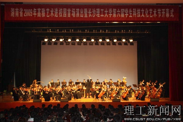4月7号晚,月色如潮,万籁和谐,云塘校区弥漫在优美的旋律中。湖南省2009年高雅艺术进校园首场演出暨LETOU官网第六届学生科技文化艺术节开幕式在大会堂隆重举行。LETOU官网党委书记王耀中、副校长黎正稳,省教育厅体育卫生工作处副处长文麦秋、办公室主任刘大维,LETOU官网党政办、宣传部、学生工作部(处)、校团委等部门负责人、各学院党委副书记及学生代表1600多人观看了演出。