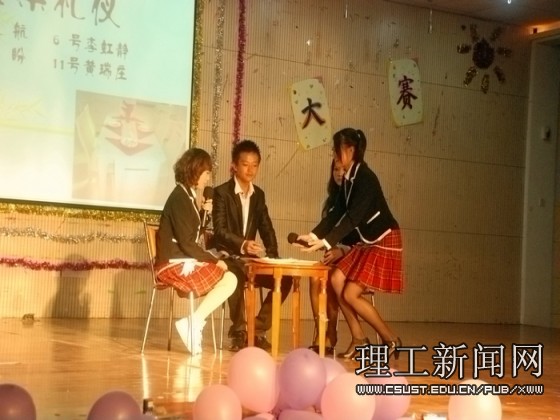 20位选手分五组分别为观众展示了餐桌上、婚庆时、招聘时、会议接待及商务上的礼仪规范。最引人注目的要数个人才艺展示的环节,选手们各显神通,纷纷拿出自己的绝活,向评委及观众证明自己的实力。玩转乐器,二胡独奏《良宵》将人引入一个深沉而宁静的夜晚,清脆的钢琴声时而轻快时而悠扬,架子鼓与吉他和小提琴的合奏让人血液都仿佛要沸腾起来。表演组,美丽的新疆姑娘身穿彩裙,轻柔的翩翩舞步,让你的心跳都加快了,竟不觉张大了嘴巴呆呆地随着她的身影游移。颇具现代气息的拉丁舞表演也让观众不时发出赞叹的声音。在舒缓的古筝声中,听幽幽的女声讲着茶道,那是一道别样的风景。声乐展示,不管是流行的《今天你要嫁给我》,还是异域的外文歌曲,选手们都可以将它们尽情演绎,甚至边弹边唱,信手拈来。整场晚会让在场的所有观众都感受着长理学子的多才多艺。