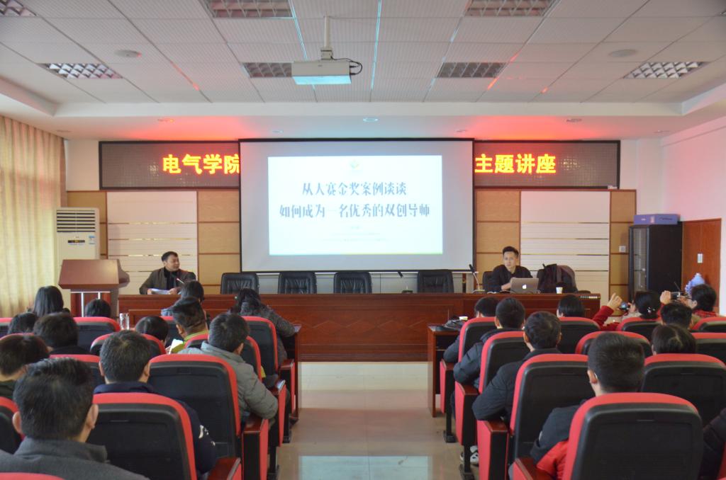 为提升双创人才培养质量及工作水平,1月18日上午,电气学院特邀北京大学光华管理学院MBA、中国人民大学 MBA、深圳前海梧桐并购基金董事总经理蒋楠作了题为《从大赛金奖案例谈如何成为一名优秀的双创导师》的主题讲座。电气学院党委书记符慧林、副书记丁丹,设计艺术学院党委副书记陶双、学业指导团队及电气、艺术、经管等学院80余名老师参加。