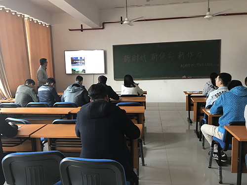 3月12日下午,材料学院学生党支部在新能源大楼303成长辅导室召开了“新时代,新使命,新作为”主题党日活动。院党委副书记唐青,学生支部书记谢易真参会,活动主题是汇报学生党员寒假社会实践活动情况。