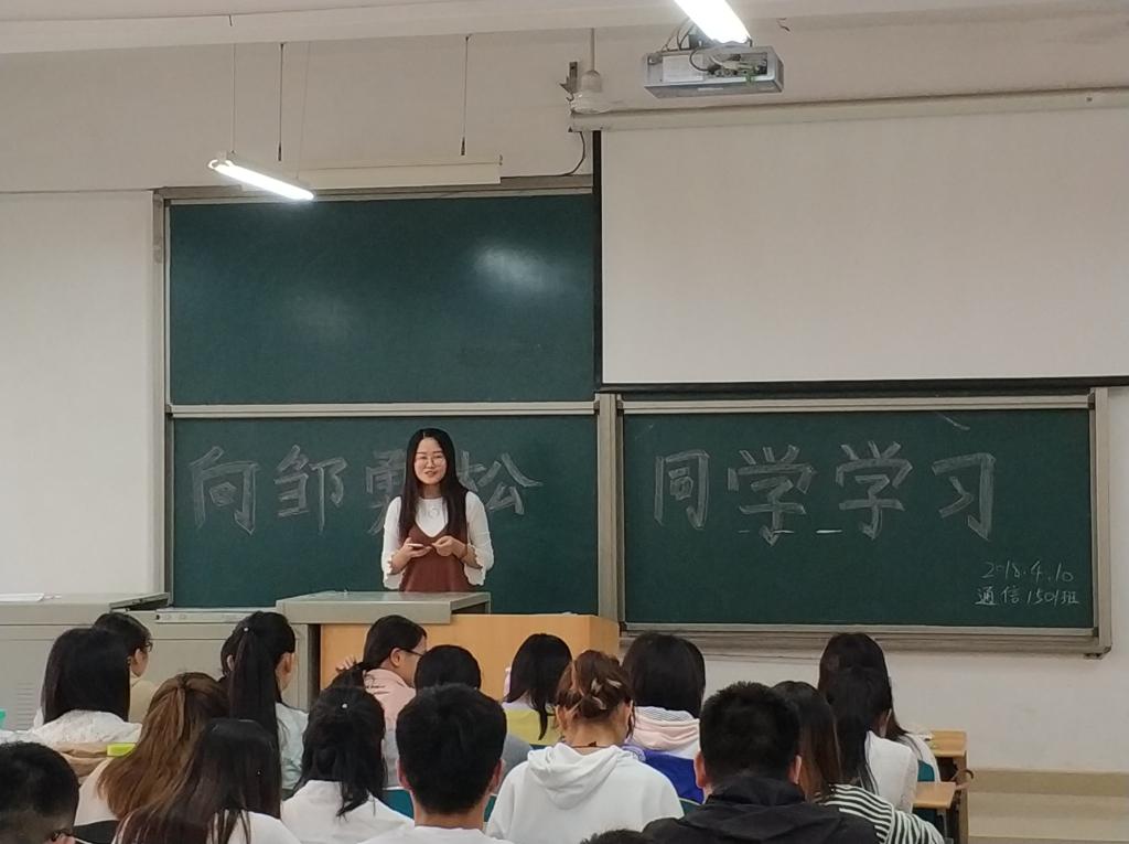 4月10日下午,计通学院通信1501、1502、1503班团支部联合召开了“向邹勇松同学学习”的主题团会。院团委副书记郭开敏列会,团会由通信1501班团支书宋平主持。