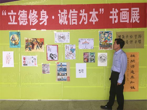 5月4日,艺术学院于建筑艺术楼大厅举行“立德修身 诚信为本”书画展。校关工委王乃厚主任到场参观指导。