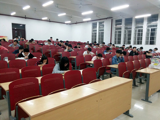 5月8日,化学学院在理科楼A100举行本学期第一次四级模拟考试,考试由年级辅导员江洁、15级年级组成员组织,82名未过四级的同学参加。