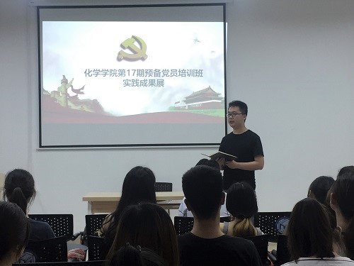 5月16日晚,化学学院第17期预备党员培训班学员实践成果汇报会于工三B210召开,学生党总支委员李昊昱,各支部支委及培训班全体成员参加。