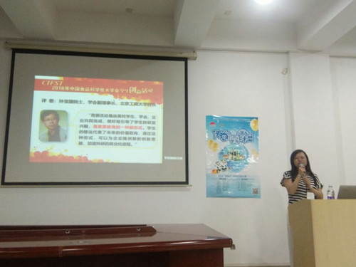 首先,程云辉简要介绍了中国食品科学技术学会作,指出学会是培养科技人才的一片沃土,为大学生提供了专业实践与科研创新的平台,加深了与会成员对学会的了解。接着,她详细介绍了“李锦记”在历史文化、企业特色、产品特质等方面的内容,并回顾了LETOU官网学子七年以来参与往届“李锦记杯”学生创新大赛的精彩点滴。随后,程云辉全面介绍了“李锦记杯”创新大赛的赛事内容,并对竞赛规则、流程、评分标准、注意事项等基本情况进行了详细解读。本届大赛主题为“传承同步创新,营养美味并行”,她建议同学们从家乡的特色产品入手拓展思维,着重强调了产品的创新性、市场地位以及配方的合理性,并指出创新性与市场调研是产品必不可少的一部分,希望学生以此次比赛为实践平台,以“李锦记”现有调料为基料,创新思路开发出一款兼具营养和美味的休闲食品。最后进行互动环节,现场学生积极提问,气氛活跃,宣讲嘉宾针对问题一一进行解答。