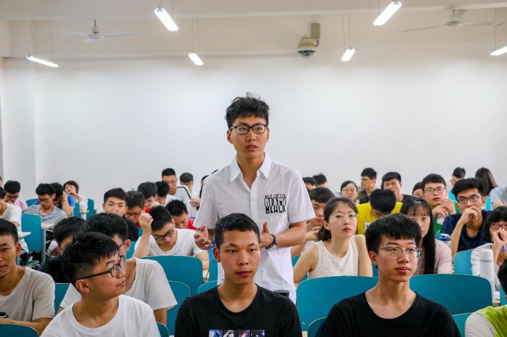 本次示范课讲解科目为自动控制原理,郑汉是“小葵花课堂”创始人、测控1602班预备党员、生活委员,曾获得“十月诗会”(古诗词组)一等奖、数学竞赛非数学专业组三等奖、2016-2017学年二等奖学金、校级三好学生称号、国家普通话水平测试二级甲等。课堂上,他结合例题,分别针对“梅逊公式”、“根轨迹法”等自动控制原理重难点进行讲解。课堂生动有趣,同学们听讲认真、问答环节积极发问,课堂气氛活跃,掌声不断。