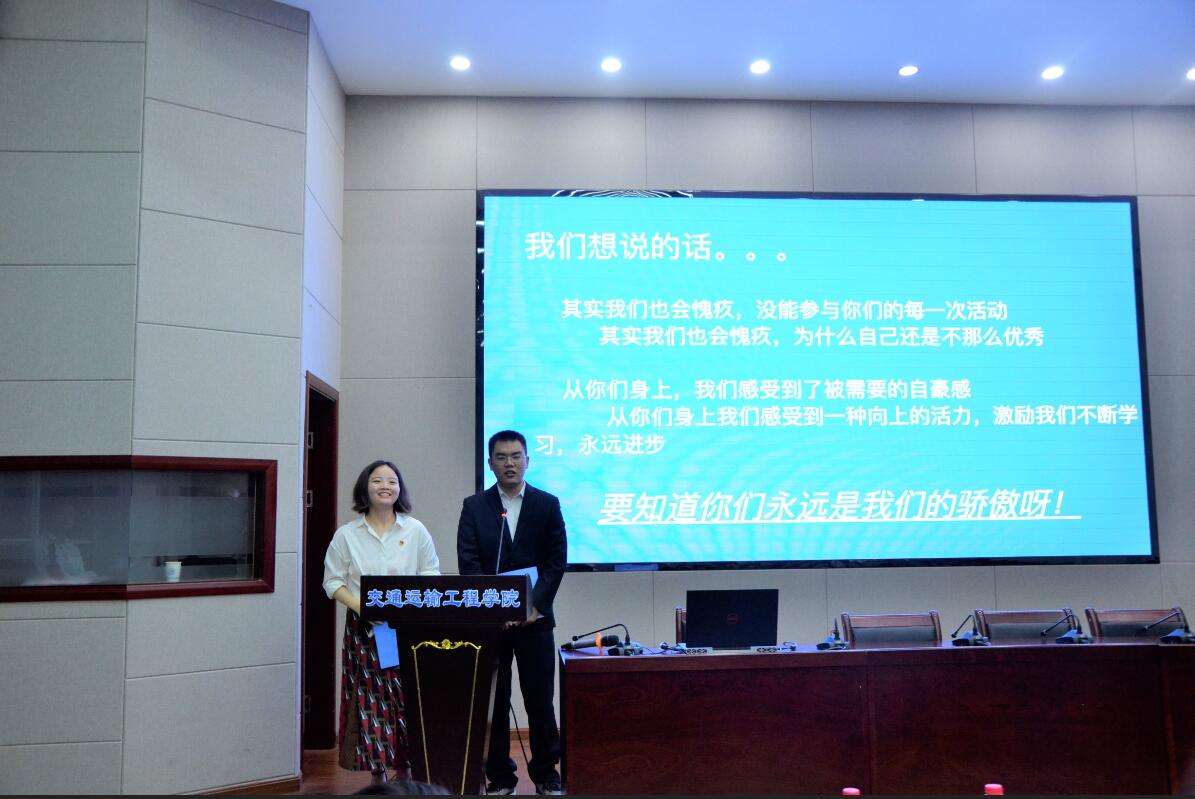 6月1日晚,交通学院“十佳下班党员(干部)”评选活动暨授徽受聘仪式在工二科技报告厅举行。校党委组织部副部长彭霞、院党委副书记田上、院关工委吴滨、党建辅导员肖敏强以及学工办全体老师莅临现场。