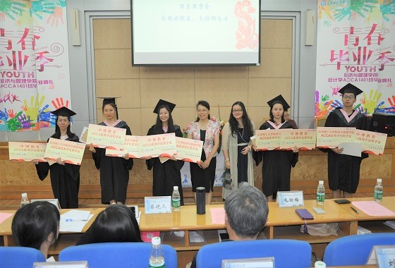 6月14日,首届会计学ACCA方向班毕业典礼在金盆岭校区办公大楼一会议室举行。副校长谈传生,学校相关职能部门和经管学院领导,ACCA中国官方华南区教育发展经理蔡晓凡、中博教育副总裁毛劲梅等合作企业方嘉宾、数十位ACCA学生家长以及全体2014级ACCA方向班学生参加了毕业典礼。本次典礼由经管学院党委书记王宏主持。