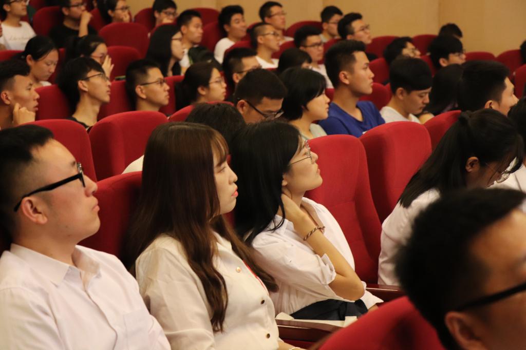 现场听众纷纷表示,要以劳模先进为榜样,深入学习贯彻习近平新时代中国特色社会主义思想,不忘初心,牢记使命,争做新时代的奋斗者,为决胜全面建成小康社会、夺取新时代中国特色社会主义伟大胜利、实现中华民族伟大复兴的中国梦作出更大贡献。电卓1701班李子玉说:“大师姐脚踏实地、奋勇拼搏和学无止境的精神给了我满满的鼓励和动力。”研究生赵廷说:“按部就班是我们的基本义务,追求卓越是我们的长远追求,生活工作中的困难不是为了使我们屈服,而是为了锻造出真正的适者,从而促进生活向着美好发展!”