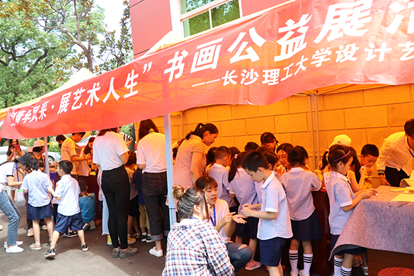 书画展结束后,志愿者们将现场所绘制的作品进行义卖,通过湖南人人公益发展中心、长沙市雨花区群英公益发展促进中心,将义卖后的资金全部捐给湘西的希望小学,这不仅为延续与发扬中国优秀传统文化贡献一份力量,也为支助贫困学子献出一份爱心。