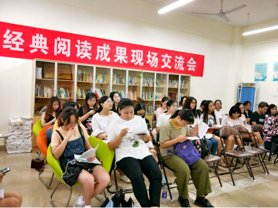 6月29日下午,文法学院举行经典阅读成果分享交流会,院党委副书记魏桃初,16级辅导员楚艳鸽到场聆听,17级学生干事钟瑾钰主持,16级汉语言文学专业四个班级学生代表参与。