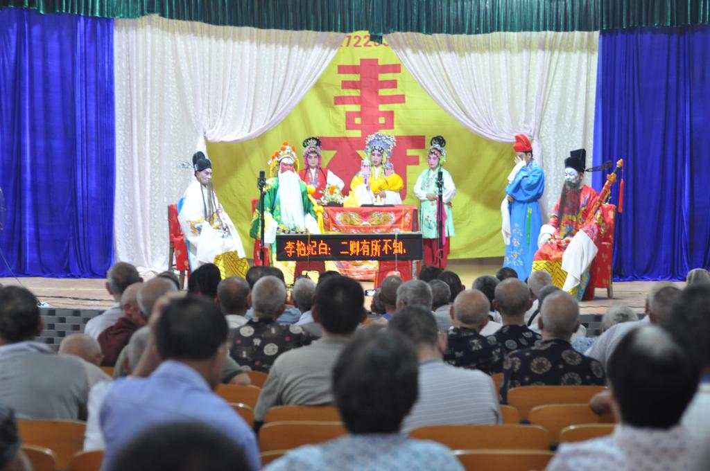 调研团一行顶着烈日,来到剧团租用的表演场地——西都影院。上午11点半到2点半,这是他们一台戏的表演时间,剧院设备简陋,台上台下简单摆放着几台风扇。舞台上几位身着戏服的老艺人正在表演辰河高腔剧目《大保国》,台下除了调研团队的年轻身影,剩下的全是老人。
